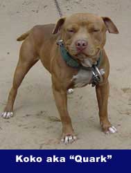 perhatikan ekor KOKO yang bob tail, pernah ada gen bobtail pada APBT masa awal, bob tail tersebut bukan kosmetik surgery melainkan bawaan gen, ada juga pigment warna black and tan seperti Rottweiler hanya saja warna tannya cenderung lebih terang, sehingga menyerupai warna black and tan yang biasa dijumpai pada anjing2 mongrel.