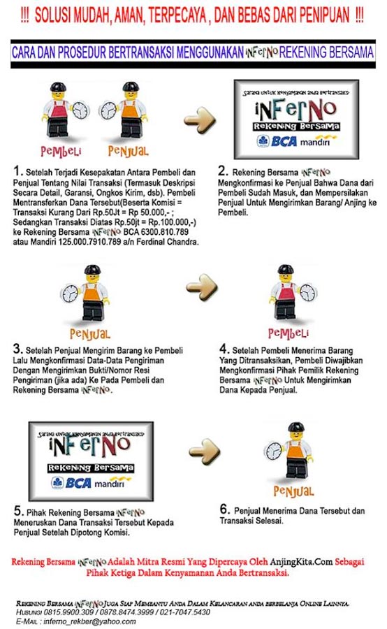 Demi keamanan dan kenyamanan transaksi jual beli anjing atau produk lainnya, gunakan selalu Rekening Bersama InFerNo.