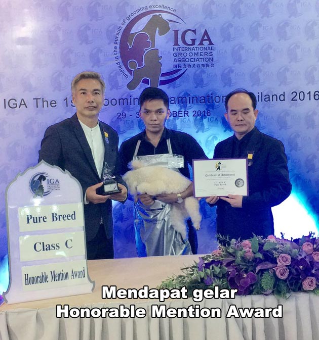 Salah satu groomer yaitu Anthony berhasil meraih predikat "Honorable Mention Award", yang artinya groomer berbakat.