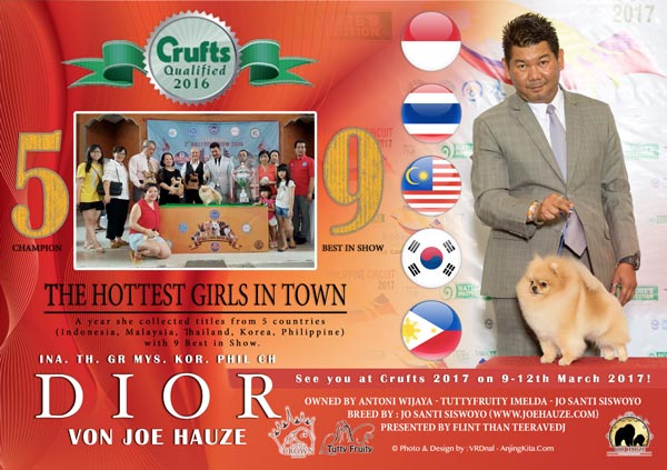 Liputan ini terselenggara berkat dukungan dari JHZ Team : Akwet, Jo Santi Siswo, Anthony Wijaya dan Imelda Wijaya yang sekaligus mengantar INA. TH. GR MYS. KOR. CH. Dior Von Joe Hauze dan No.1 Indonesia PERKIN All breed - "Sandy Diamond Arishem The Judge" (Clown) untuk berlaga di pameran bergengsi tersebut.