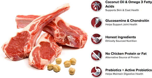 # 1 Ingredient is Fresh Lamb, Naturally Occurring Glucosamine & Chondroitin, Hi Percentage of Omega 3 Fatty acids, Active Probiotics + Prebiotics, and Ethics.