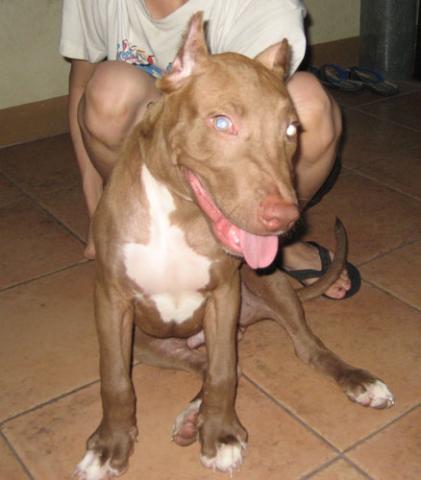 Telah hilang seekor anakan anjing American Pit Bull Terrier dengan ciri-ciri sebagai berikut :
