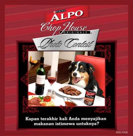 2. Kirimkan foto berwarna maksimal 3 lembar dengan ukuran 3R tentang saat-saat istimewa anda sedang menyajikan ALPO Chop House (varian apa saja) untuk anjing kesayangan anda.