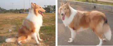Bulu tebal, bulu leher putih mengalung, lincah, pintar, bersemangat, ukuran badan dan kepala besar.