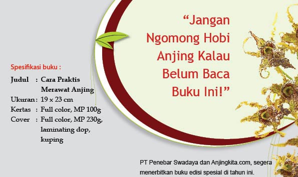 PT Penebar Swadaya dan Anjingkita.com, segera menerbitkan buku edisi spesial di tahun ini. Buku ini cocok untuk hobiis di Indonesia karena membahas mengenai "Cara Praktis Merawat Anjing" tentang :