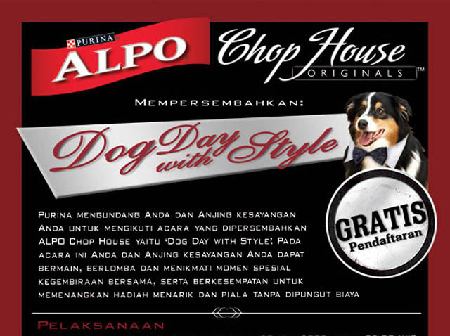 Ayo buruan segera daftarkan kamu dan anjing kesayanganmu untuk mengikuti acara "Dog Day with Style", buatlah hari Minggu ini menjadi hari yang menyenangkan bersama dengan keluarga dan anjing kesayanganmu.