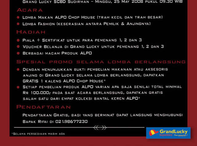 Untuk lebih memeriahkan "Dog Day with Style" maka ALPO menampilkan kedua atraksi tersebut di atas, dan bukan hanya itu kini ada Dokter Hewan yang akan akan membantu memberikan konsultasi tentang anjing kesayanganmu secara GRATIS sepanjang hari.