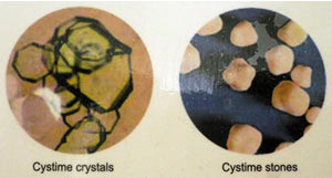 Adanya batu atau kristal tersebut dapat membuat iritasi saluran air kencing, akibatnya saluran tersebut rusak, ditemukan darah bersama urin yang dapat menimbulkan rasa sakit.