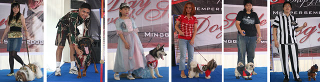 Alunan musik mengiringi setiap kali para peserta berjalan di catwalk. Ada seekor Rottweiler berseragam tentara lengkap dengan topi rimba dan kacamata hitamnya, ada seekor Siberian Husky berpakaian layaknya ratu pesta dan ada seekor Golden Retriever yang melengang dicatwalk tanpa baju apapun.....loh? ternyata konsepnya jalan-jalan bersama pemiliknya, makanya sang anjing tidak diberikan busana.