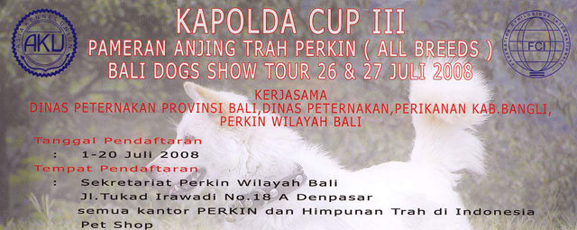 Perkin wilayah Bali akan menggelar Pameran Anjing Multitrah Back To Back dan Allbreed pada tanggal 26 & 27 Juli 2008 bertempat di Lapangan Kapten Mudita Bangli-Bali. Pameran ini bekerja sama dengan Dinas Peternakan Provinsi Bali dan Dinas Peternakan & Perikanan Kabupaten Bangli.