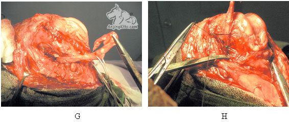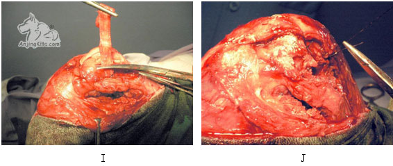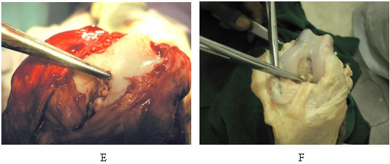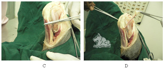 C & D. Fasia otot bagian lateral dari patella disayat dan dipreparir untuk membuat tali pengganti CCL