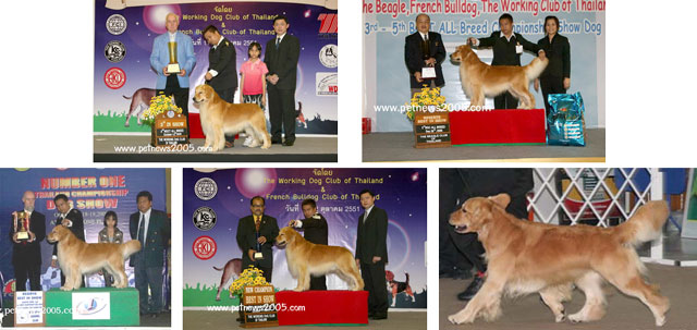 4X Best Of Breed, 2X Best Of Group, 2X Best In Show Speciality, 1X 3rd Best In Show, 1 X Best In Show - WDCT 2008 - Thailand.