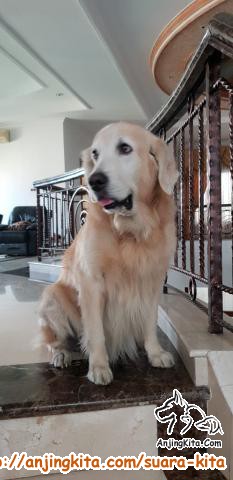 Open adoption: Golden retriever, Jantan, stambum, umur 9 thn, sehat, ramah, terbiasa di tengah tengah keluarga.