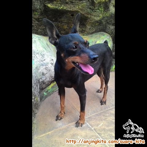 Mini pinscher dewasa untuk diadopsi, betina, ukuran 30cm, warna hitam,