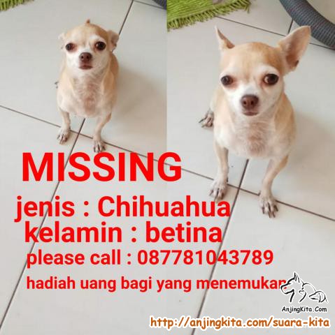 Anjing chihuahua hilang pada tgl 15 Agustus 2019