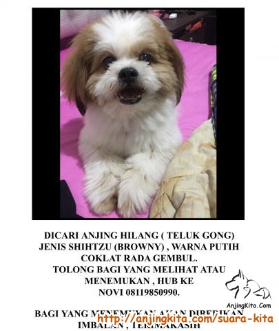 Di cari anjing hilang di kawasan teluk gong berjenis shih tzu ( coklat putih )