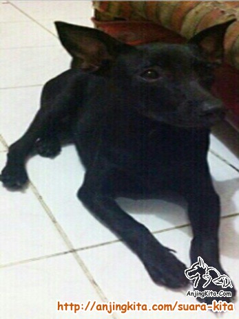 Ciri-ciri: Keseluruhan badan berwarna hitam, kuping berdiri tegak, lidah ada corak hitam nya ,buntut meringkel ke atas