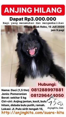 Anjing Pomeranain Hitam Hilang Grand Galaxy, Bekasi