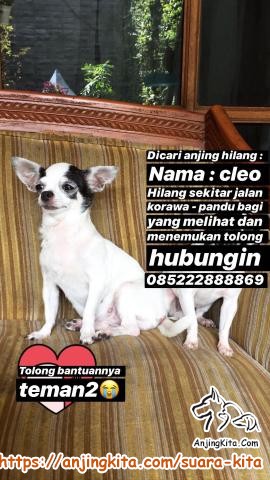 anjing chihuahua hilang sudah tua sekitar 10thn bernam cleo hilang sekitar jalan pandu pajajaran bandung apa bila menemukan tolong hubungin nomor 081223722269 dan akan diberi imbalan terimakasih mohon doanya