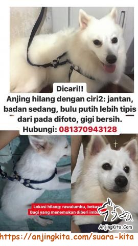 Dicari Anjing Hilang Japanese Spitz, Di Rawalumbu, Bekasi