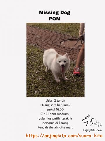 Anjing Hilang Pom Warna Putih.