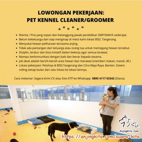 Lowongan pekerjaan bagi anda atau teman anda yang menyukai hewan! (Khususnya anjing) Wajib tinggal didalam mess.
